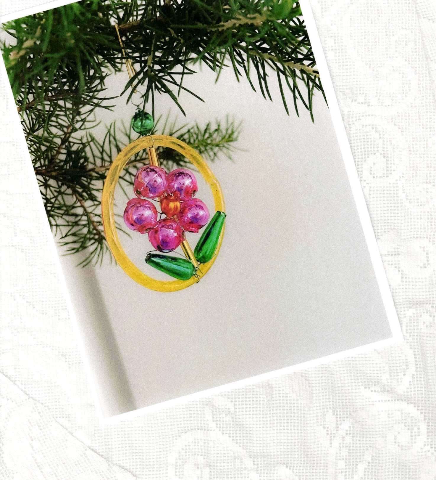 Flower in Ring Pink Glass Xmas