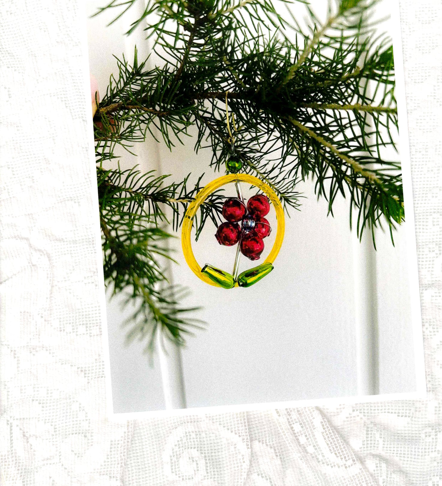 Flower in Ring Red Glass Xmas