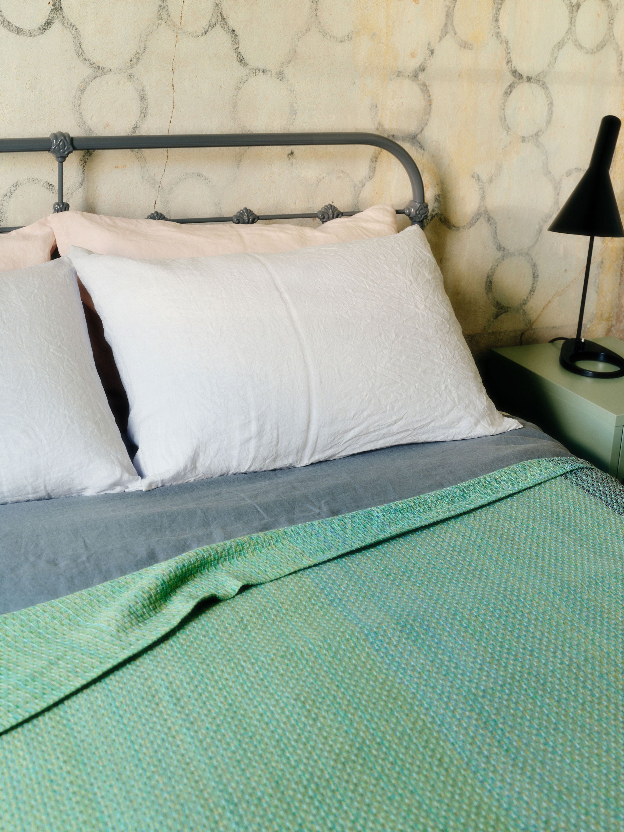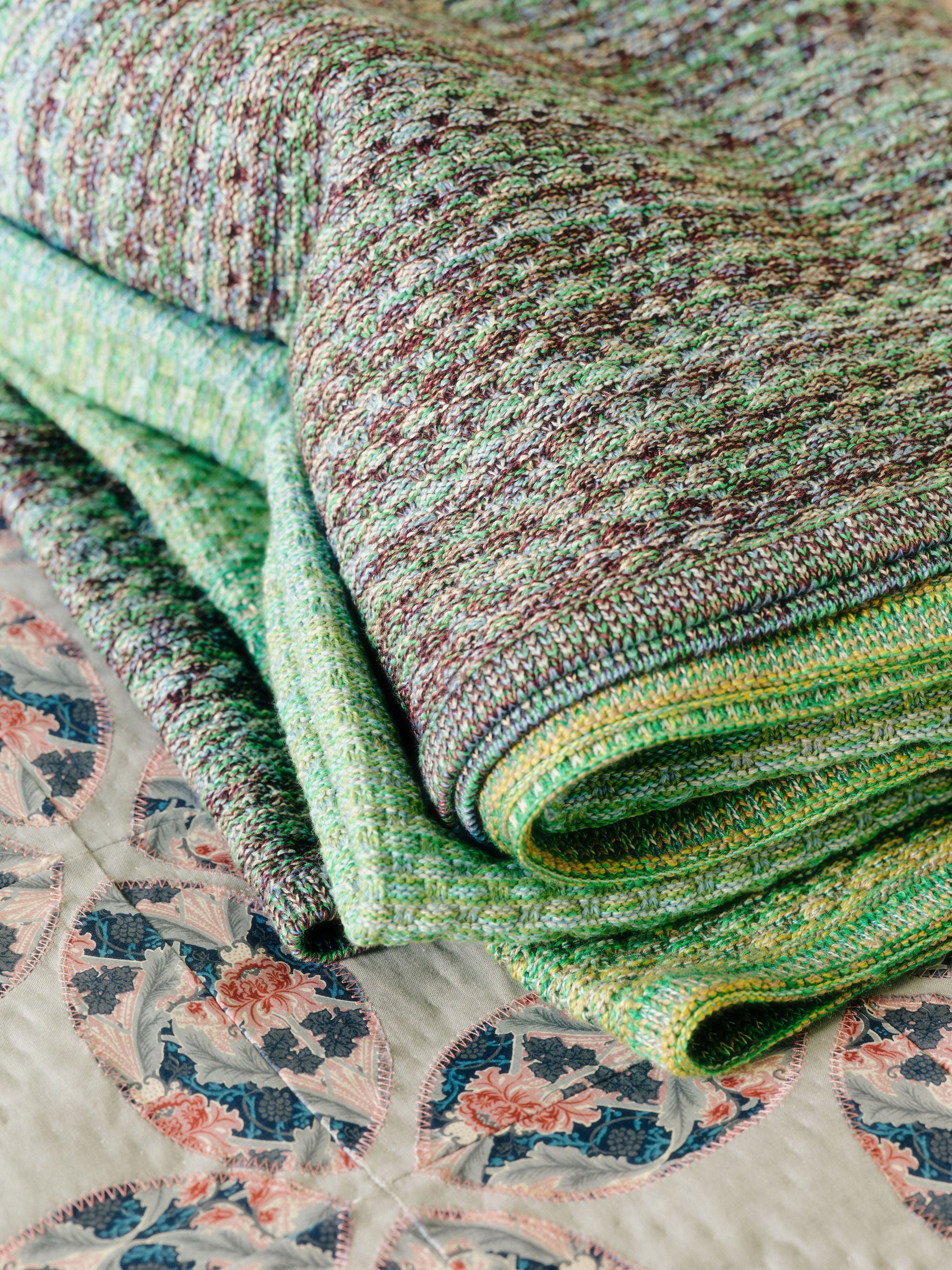 This King-sized Textured blanket has been built from the best Australian Merino with eight ends, colours shifting and changing throughout the knit. The surface is dense, sculptural, an heirloom weight that feels closer to tapestry than textile.