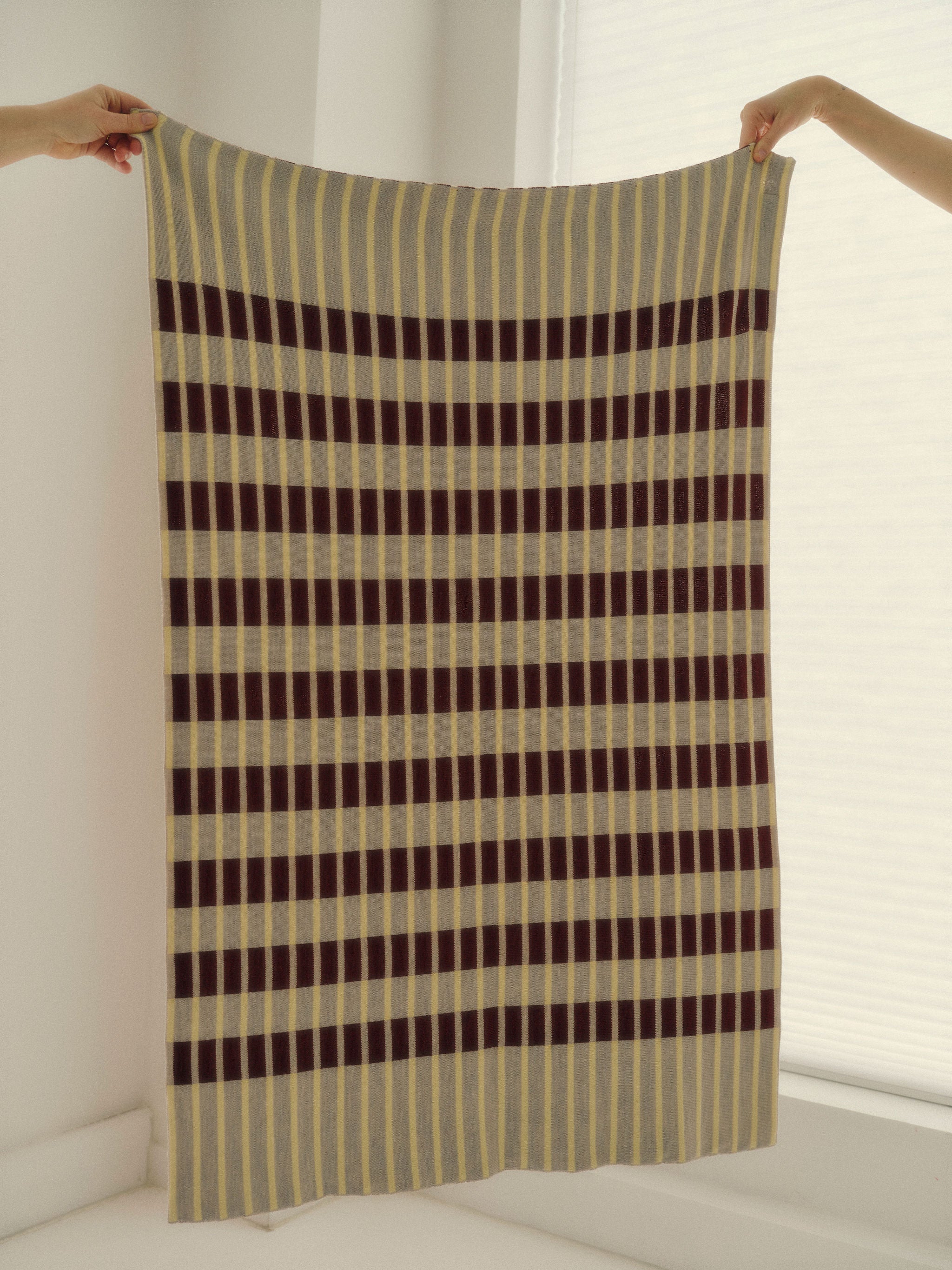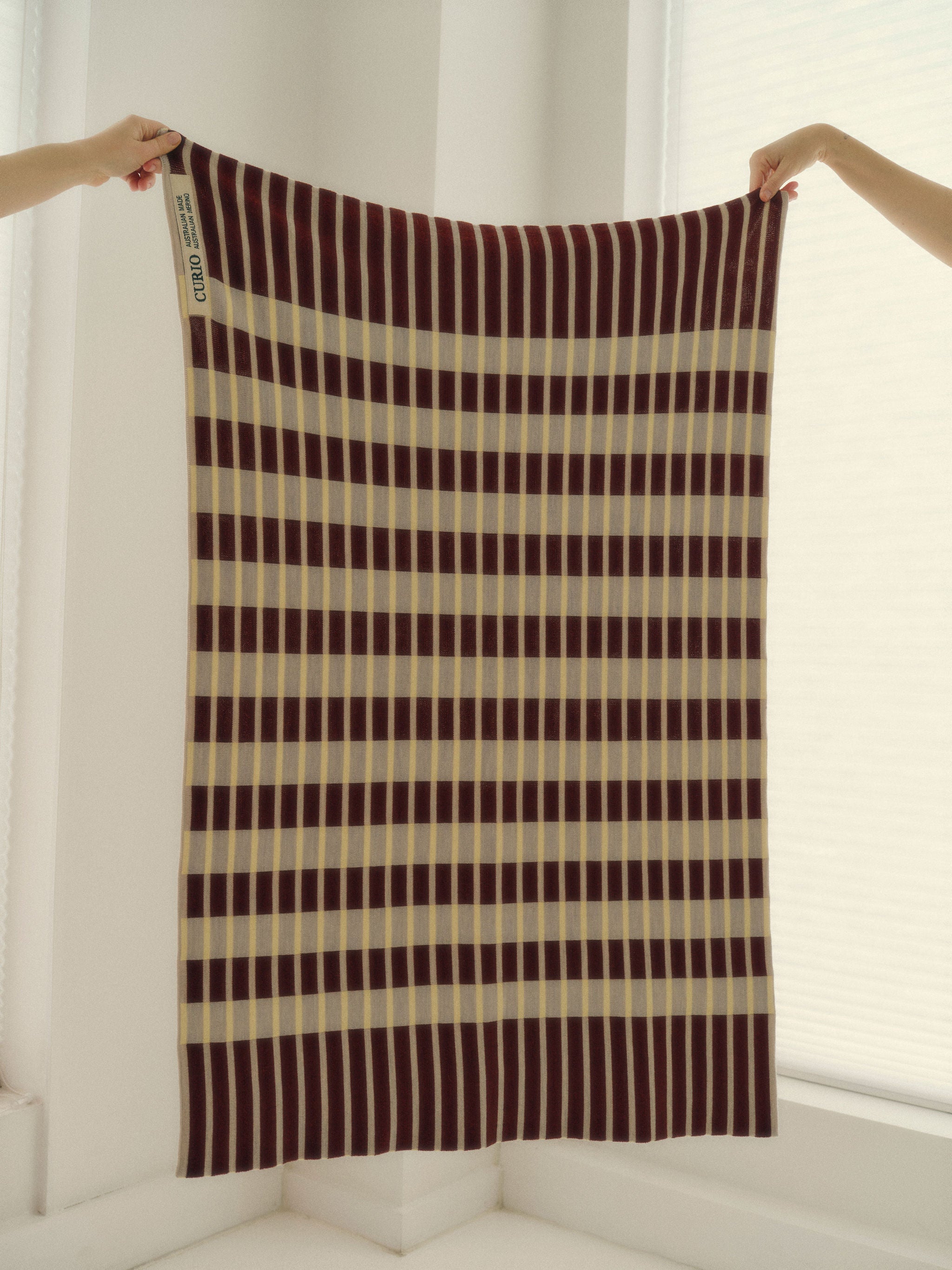Cafe Aubette Blanket is knitted from the finest Merino wool yarn (21 microns) for unparalleled softness and durability. Every detail is handcrafted in Australia with love, from the hand-finished edges to the CURIO label, embroidered in Central Victoria from Australian cotton. Each element reflects our dedication to quality and ignites curiosity through intricate details and thoughtful design, destined to bring joy and become a beloved addition to your home.