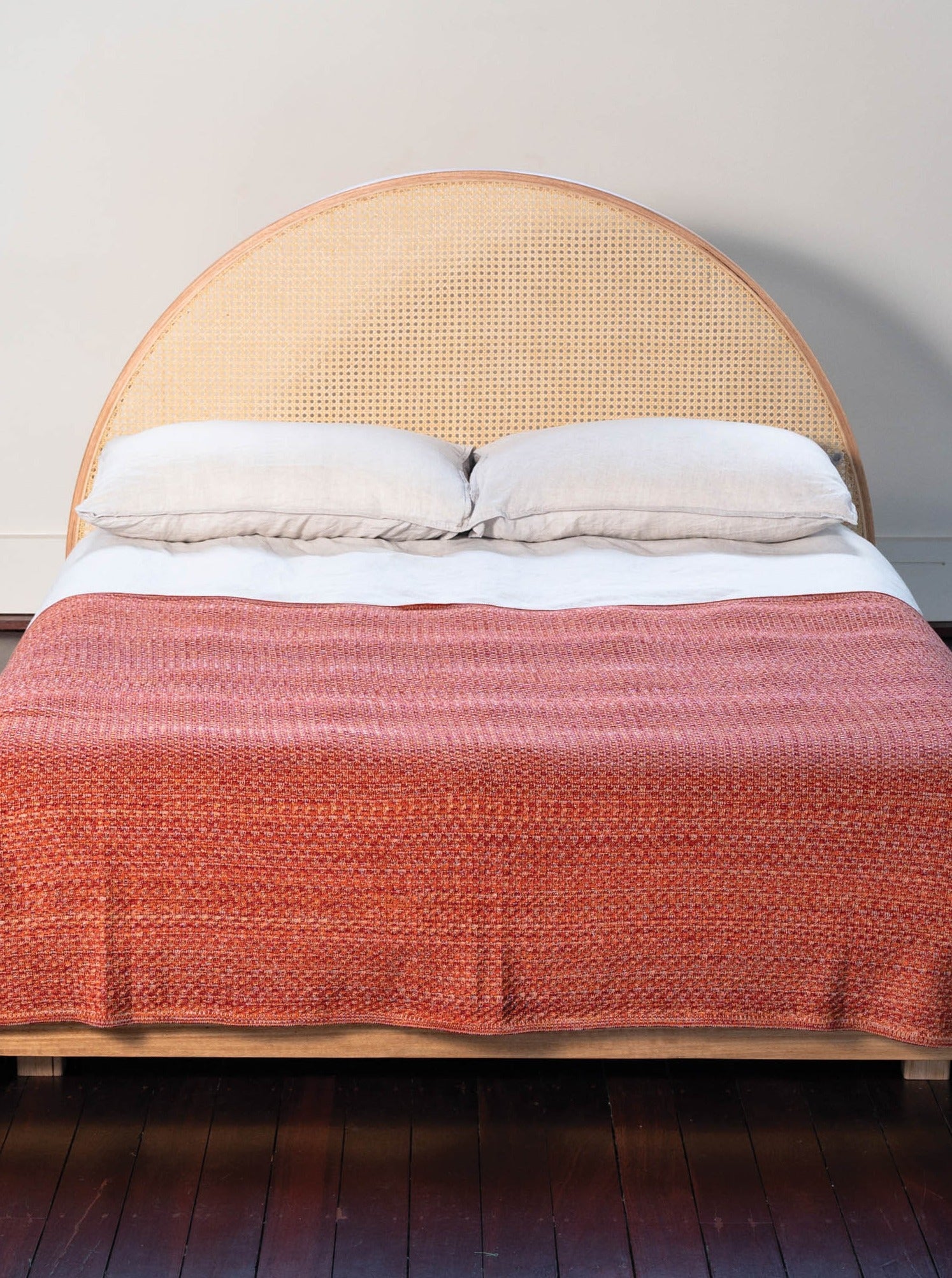 Meticulously hand-finished edges elevate the blanket's quality, while the CURIO label adds a touch of distinction. Embroidered with Australian cotton in Central Victoria, each label is carefully attached by skilled hands, reflecting our commitment to
