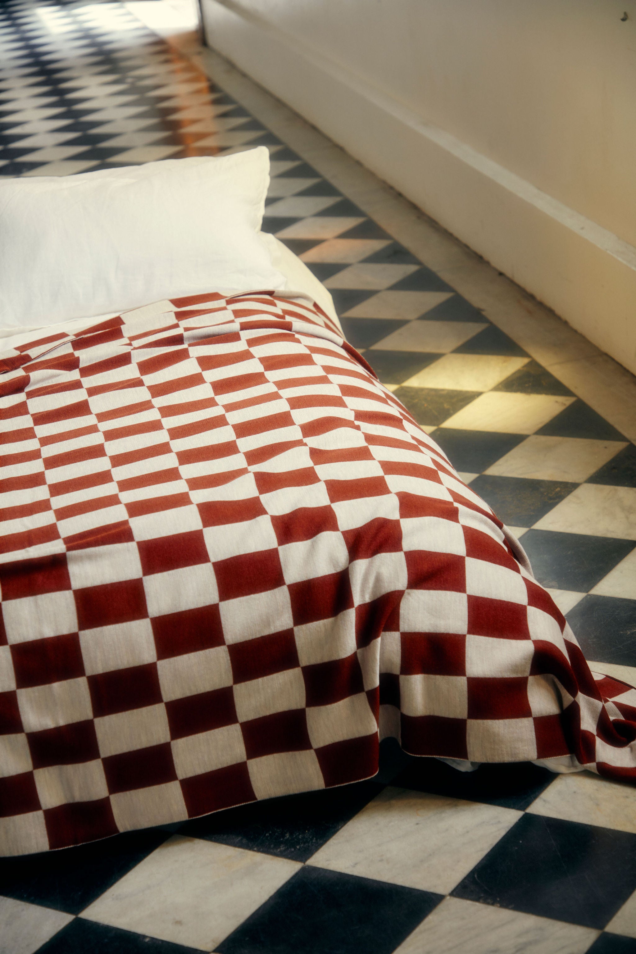 The CHOCOLATE MOUSSE Blanket, is crafted with precision and care. Knitted from the finest Merino wool yarn (21 microns), for unparalleled softness and durability. The modern rectangular shape and full drop repeat pattern add a contemporary touch to the timeless check motif. With the pattern featured on both sides, the blanket boasts a unique weight that sets it apart.